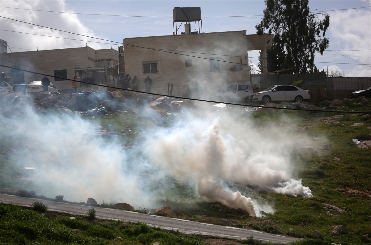 Israeli soldiers use tear gas against Palestinians as the army demolishes a Palestinian home claiming it is "unlicensed" in the village of Beit Awwa near Hebron, West Bank on February 11, 2026. Picture: Anadulo Agency