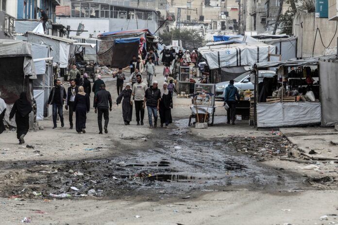 Civilians living in unsanitary conditions surrounded by sewage water and piles of garbage are at risk of contracting infectious diseases due to the lack of garbage collection and inability to meet personal hygiene needs. Trump and his Board of Peace members plan to turn this into a Riviera of the Middle East. Picture: Anadulo Agency