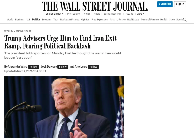 The Wall Street Journal has reported that some advisers to US President Donald Trump have privately urged him to seek a plan to end the war against Iran amid rising oil prices and fears that a prolonged conflict could trigger a political backlash.