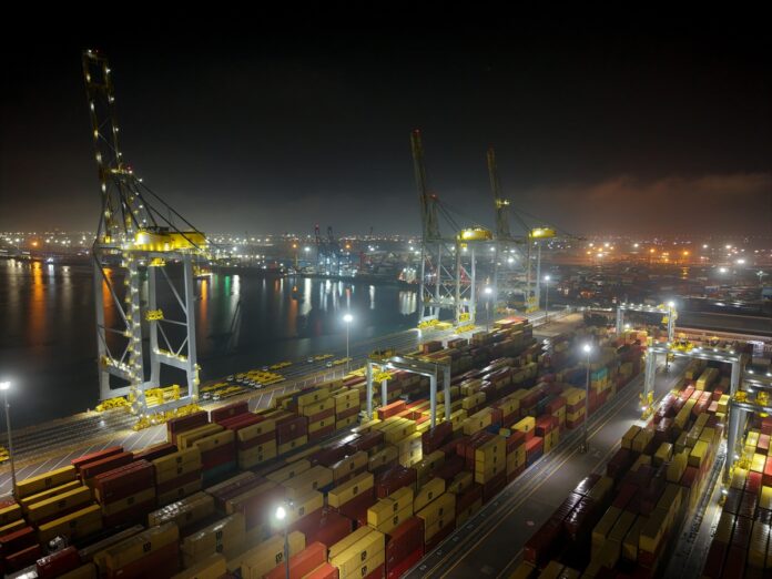 A view of shipping containers waiting at Umm Qasr Port located in Basra Governorate in southern Iraq on March 12, 2026, The war between the United States and Israel with Iran, along with the closure of the Strait of Hormuz, has negatively affected commercial activity at Umm Qasr Port. -AA